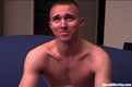 He's a little nervous being on camera for the first time, but pulls it off well. He strokes off and erupts onto his stomach.