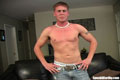 Even though he played it off fairly cool, Robbie was a little nervous making his porn debut. But in the end he comes through with a massive load. He even needed a second cum towel to clean up the mess on his stomach!