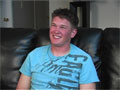 Buddy said he normally jerks off, "at least once a day," but had saved up for a couple days. And he was definitely ready to bust as soon as he got the go-ahead, shooting all the way over his shoulder and covering his chest and stomach in streams of jizz.