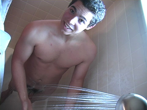After busting 2 1/2 nuts, it's off to the shower where you'll see that even the outtakes have outtakes as the shower curtain comes crashing down, Calvin admits that girls love his ample ass, and you'll hear the long list of people he told about coming by to jerk off on camera. But not his girlfriend: