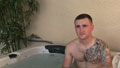 As soon as Baird showed up, he shed his cammies and jumped in the water. Before long, he perched himself on the side of the jacuzzi and was stroking away his pent-up stress.