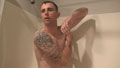 After the shower, Brantley showed off the "Bend and Receive" exercise he learned in boot camp, along with an ever-so-close attempt to sucking his own dick, and showing off those cum gutters that line his abs.