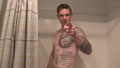 Doug headed off to the shower after coating his torso in cum. How could I resist following him, camera in hand?